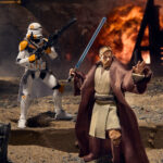 The 212th battalion’s specially trained clone paratroopers searched — to no avail — for their missing former commander Obi-Wan Kenobi, who escaped in General Grievous’ starfighter. Celebrate the legacy of STAR WARS with premium vehicles, playsets, and action figures from STAR WARS: THE VINTAGE COLLECTION. Based on Obi-Wan Kenobi and the Airborne Clone Trooper from STAR WARS: REVENGE OF THE SITH, these 3.75-inch-scale figures make a great addition to any fan’s collection. Inspired by the original line, these collectibles feature premium detail and design across product and packaging, as well as collector-grade deco that fans have come to know and love. Obi-Wan comes with his signature blue-bladed Lightsaber™ and an alternate Force hand, while the trooper is armed with long and short blasters. Calling back to the original 1970s and 1980s vintage toys, this figure features Kenner branding and package design with a unique VC number for collectability. Find other THE VINTAGE COLLECTION collectibles from the STAR WARS franchise (each sold separately, subject to availability).